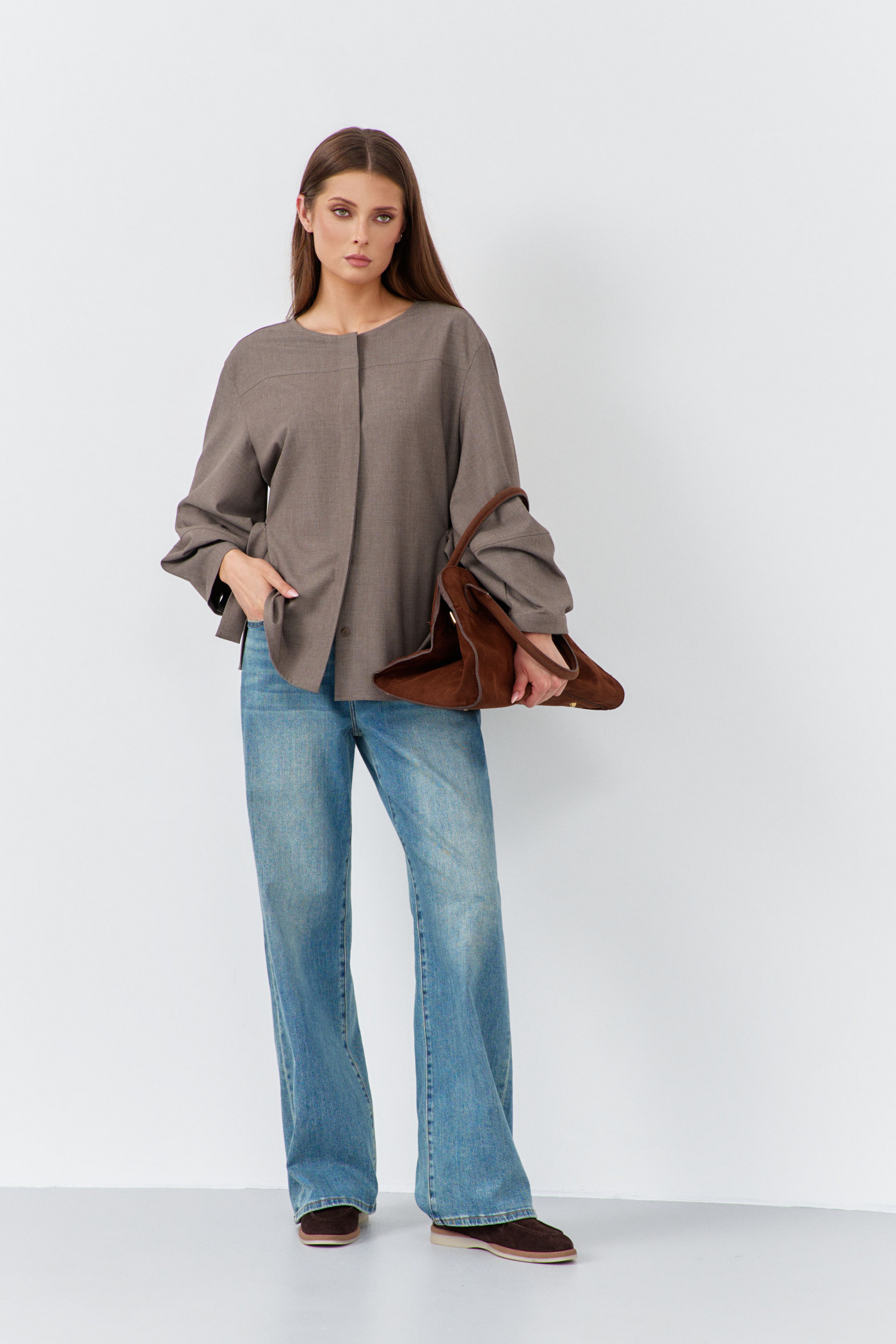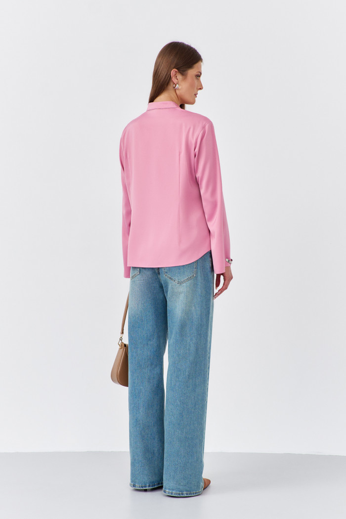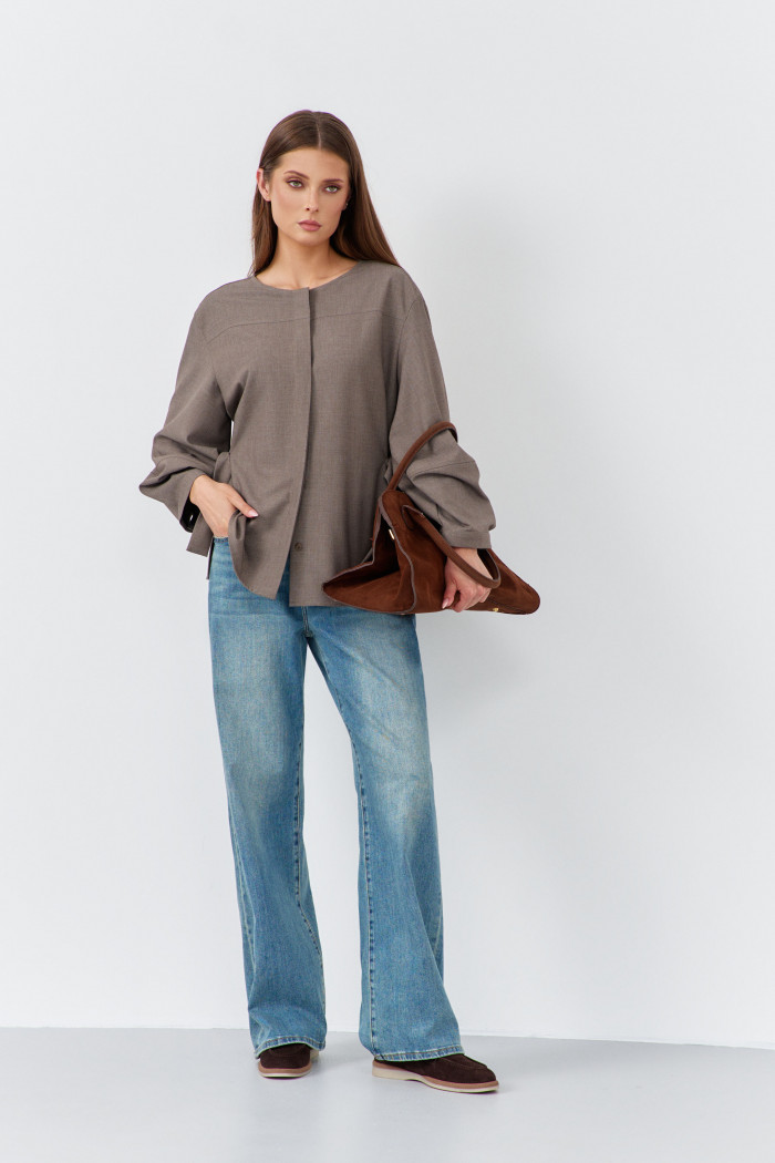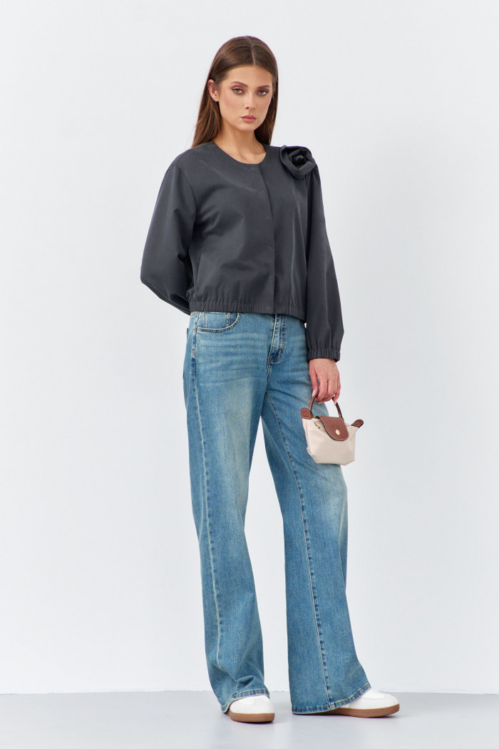 Брюки в стиле smart casual выполнены из хлопкового джинсового полотна. Модель с комфортной высокой посадкой на притачном поясе со шлёвками и застёгивающемся на декоративную пуговицу. Спереди предусмотрены карманы с отрезным бочком и застёжка на "молнию", сзади накладные карманы. Модель декорирована наличием отделочных строчек. Длина изделия по боковому шву (с поясом) 108 см.