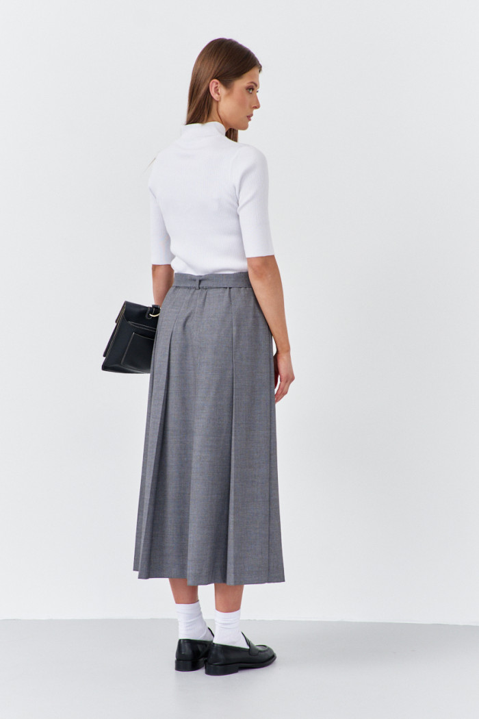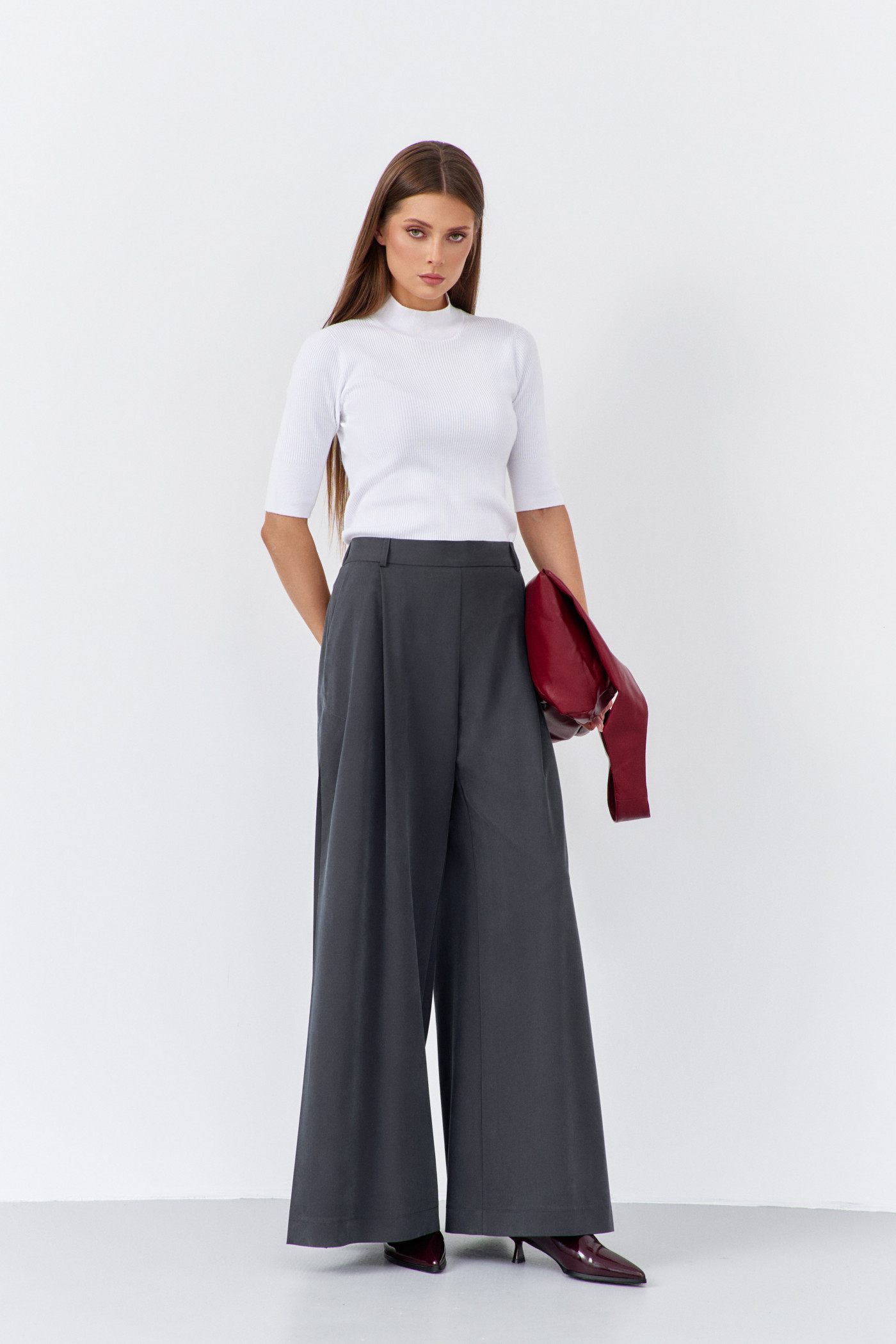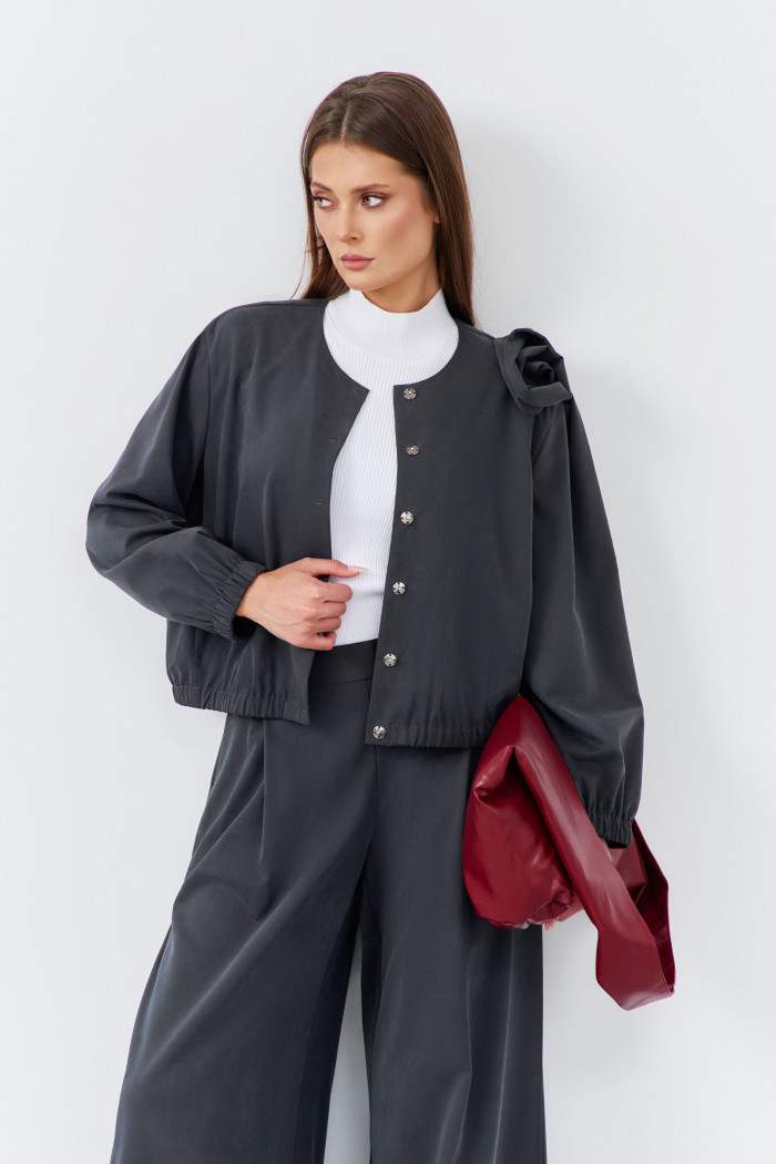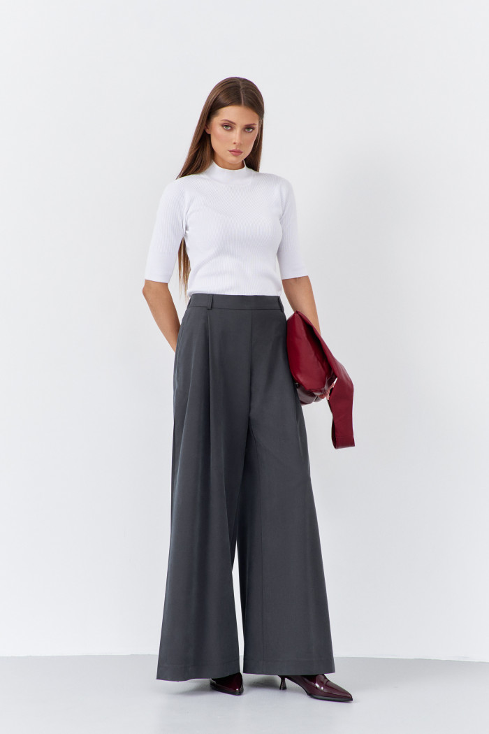 Джемпер полуприлегающего силуэта длиной выше линии бедер. Данная модель выполнена из приятного полотна, которое легко тянется и идеально садится по фигуре; в простонародье её называют «резинка». Горловина стойка. Рукава 3/4, низ оформлен манжетой в виде резинки. Джемпер будет базовой вещью в вашем гардеробе. Длина изделия 56 см, длина рукава 34 см.